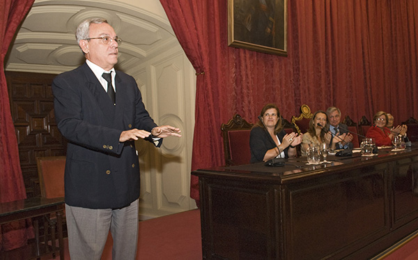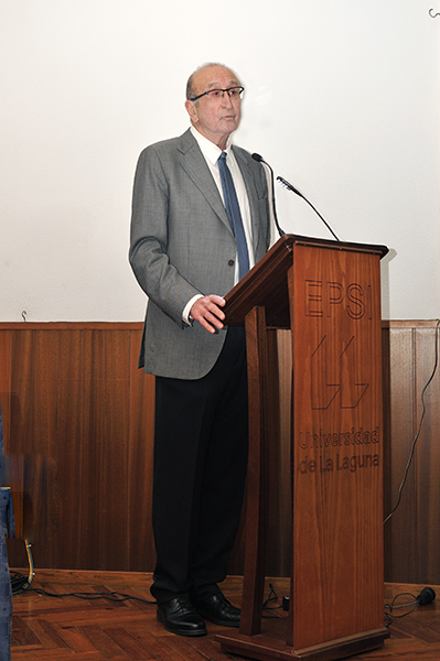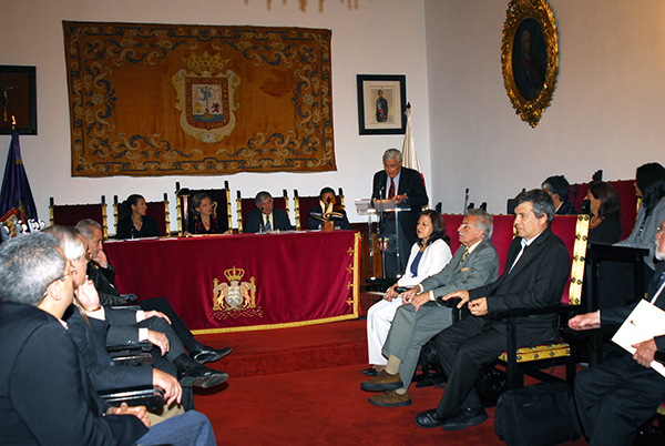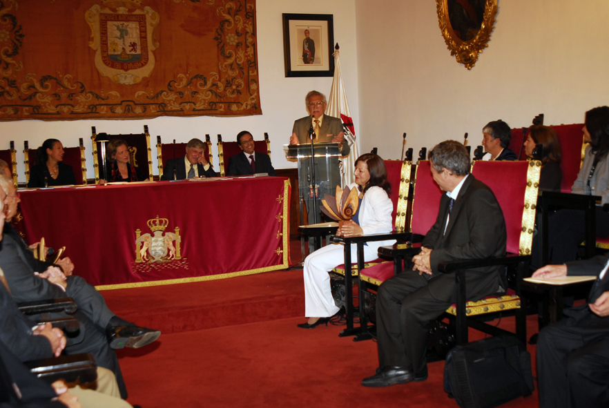 En una ciudad Patrimonio de la Humanidad, La Laguna, que alberga la sede de la Federación internacional de Centro para la Conservación del Patrimonio CICOP, y que en el año 2000 en esta misma sala invistiera Miembro de Honor de esta organización a José Saramago, es para nosotros un honor otorgar a Gianluigi Colalucci esta distinción que a partir de hoy pasará a formar parte de nuestro propio patrimonio.