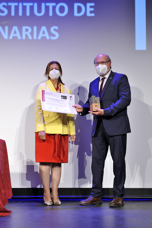 Entrega del Premio Internacional CICOP 2022 al Dr. Juan José Bacallado Aránega por parte de la Rectora de la Universidad de La Laguna, Dra.Rosa María Aguilar Chinea, y intervención del Sr.Bacallado Aránega en la ceremonia celebrada en el Teatro Leal de La Laguna