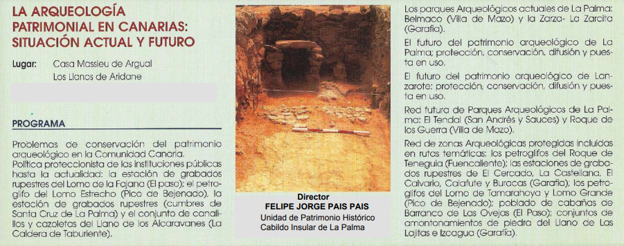 Igualmente, se le distingue por su labor de divulgación de los valores patrimoniales y actuaciones en materia educativa y de formación, constituyendo un ejemplo relevante de actuación en materia de apoyo a la conservación y ordenación del patrimonio cultural de la Isla de La Palma.