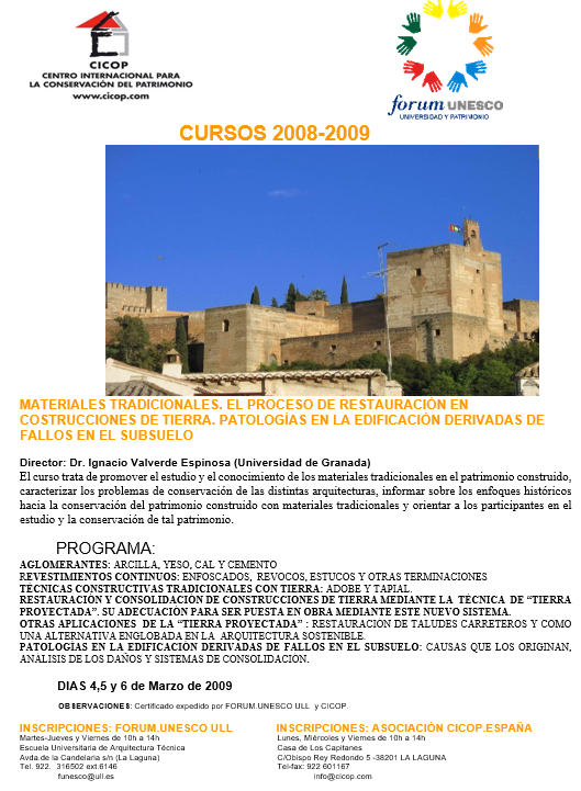 CENTRO DE PATRIMONIO MUNDIAL DE LA UNESCO (Francia) y al ICCROM. Roma.(Italia).