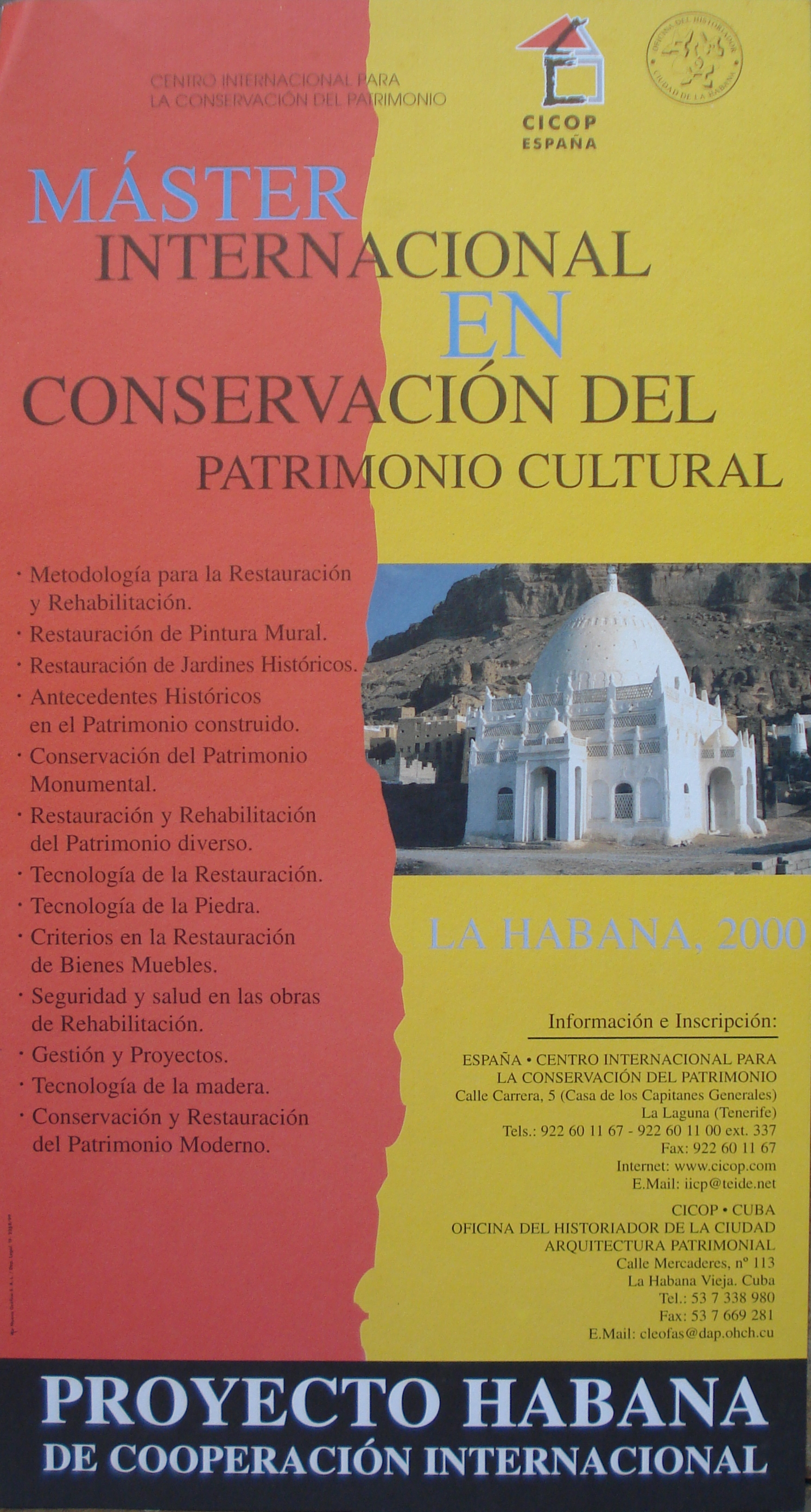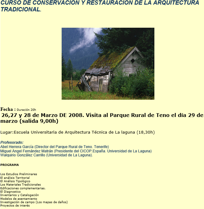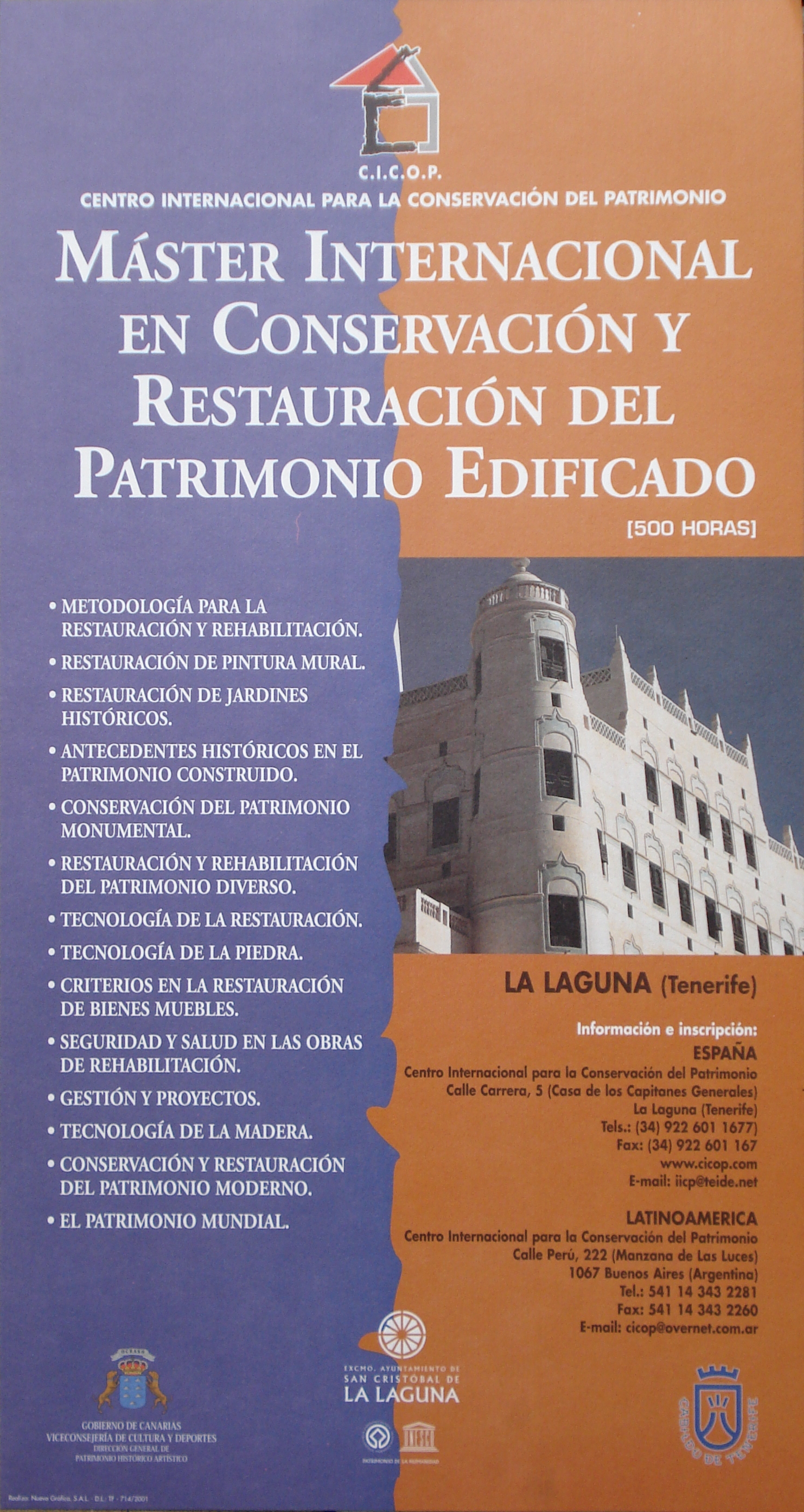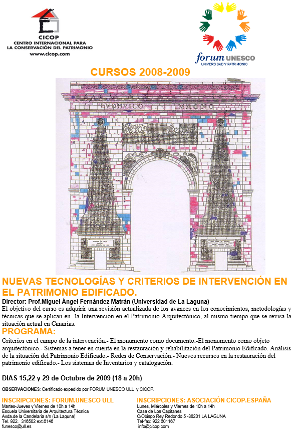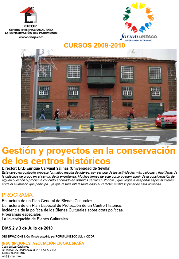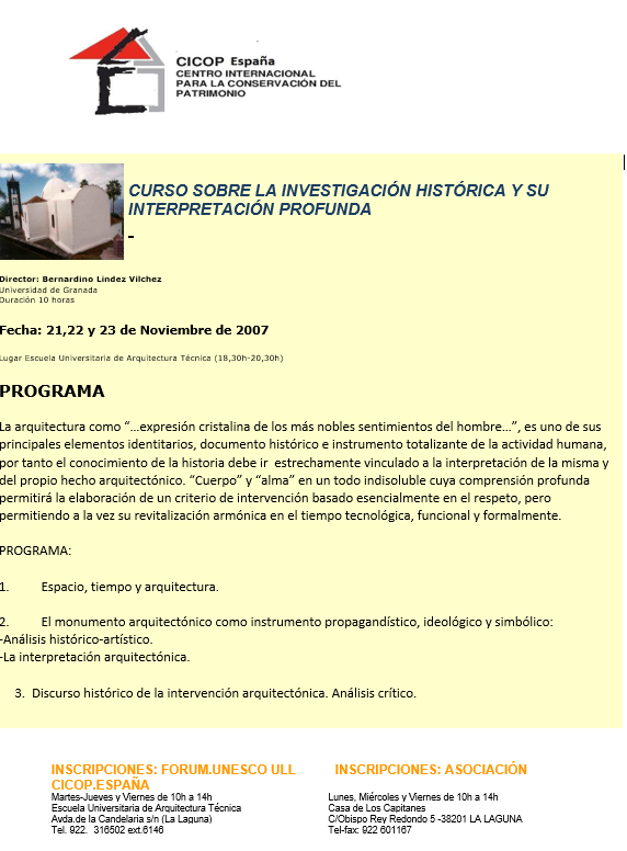 El primer Congreso celebrado en Canarias en 1992 supuso el inicio del proyecto del Centro Internacional para la Conservación del Patrimonio, y la oportunidad de ubicar en esta Comunidad Española la sede central del CICOP.España y de la Federación Internacional CICOP como punto de encuentro de América, Europa y África.. -