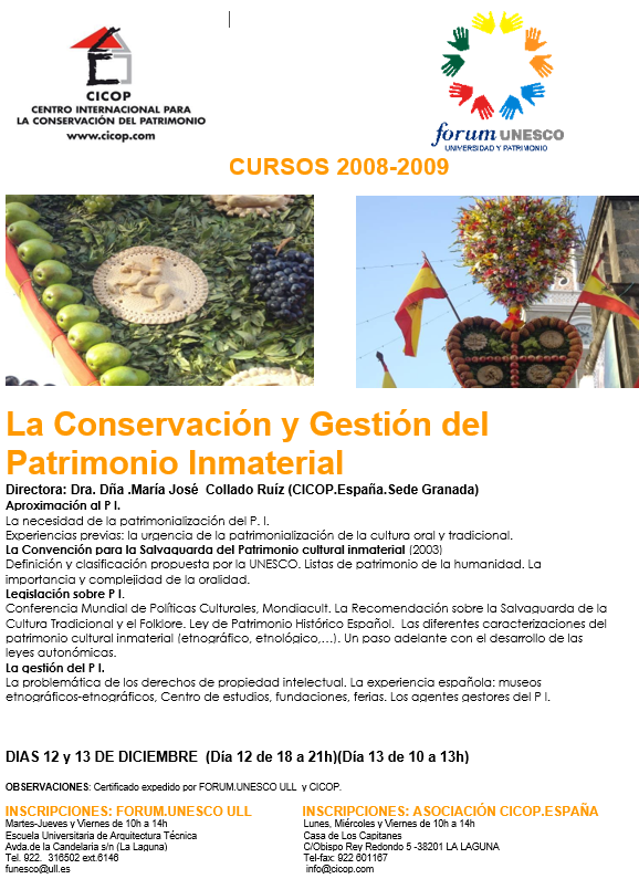 Premio CICOP de Conservación y Restauración del Patrimonio Intangible.CANARIAS 2008.