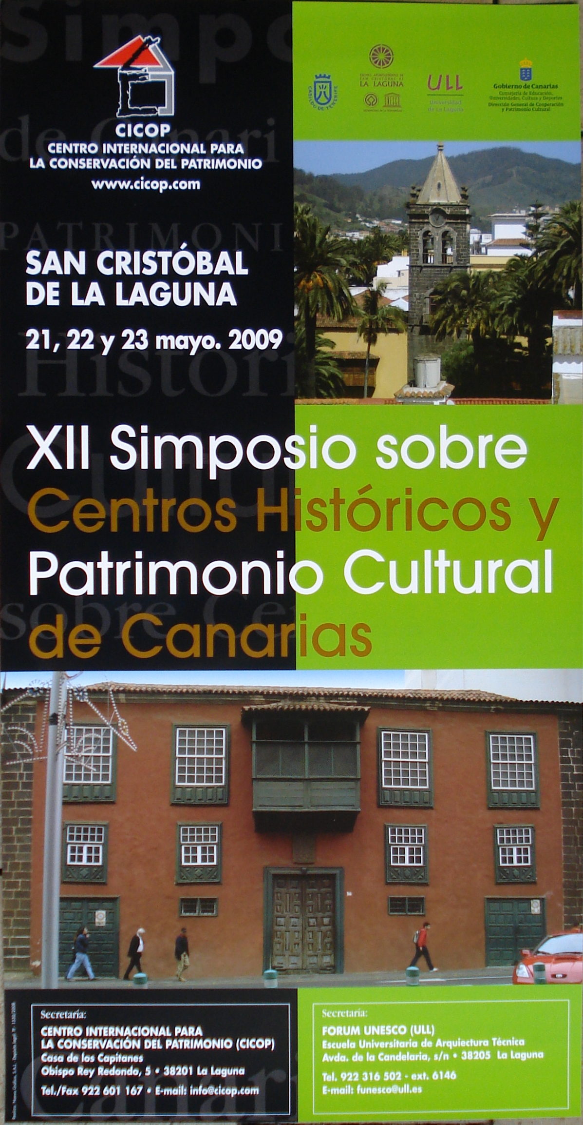 La Asociación Centro Internacional para la Conservación del Patrimonio CICOP cuya sede central se ubica en San Cristóbal de La Laguna, comenzó a realizar este Simposio en 1993 distinguiendo así a la clara vocación de reconocimiento y aproximación a la realidad actual del Patrimonio Cultural de Canarias en su escala más universal. Es a partir de 2011 que a la Organización CICOP se sumó la Fundación CICOP en la organización de este Simposio que comenzara en 1993 en el Salón de Actos del Centro de Enseñanzas Integradas de La Laguna